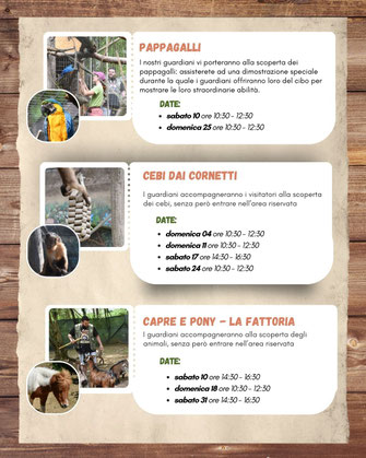 We are pleased to tell you that there is now a monthly calendar for animal presentations and experiences.